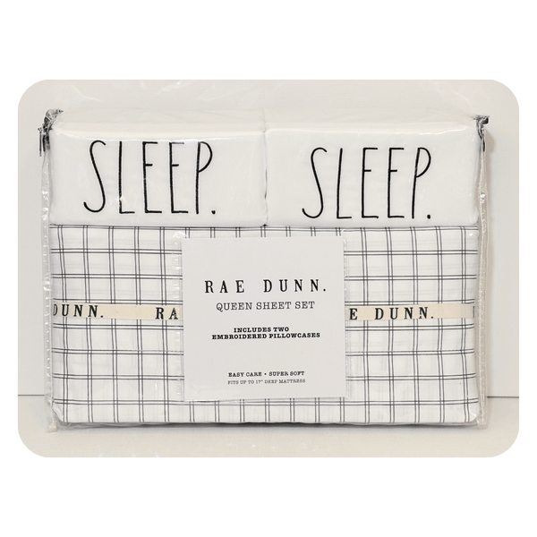 Quick shop Rae Dunn Rae Dunn Sheet Set Sleep, Black Stripe - Queen/King | Farmhouse Bedding from $35.00